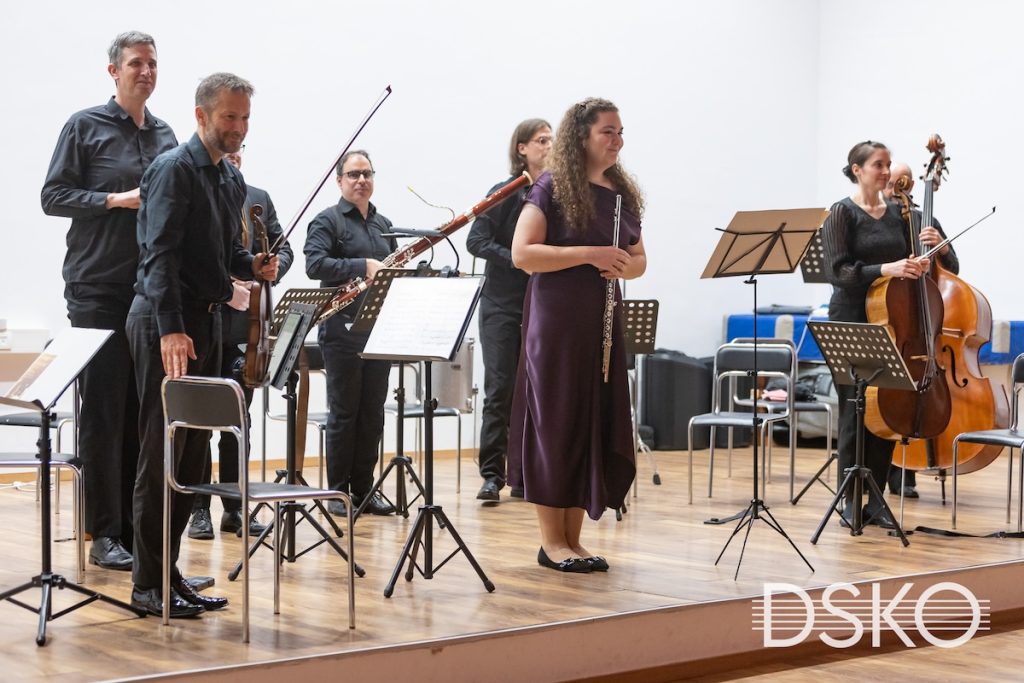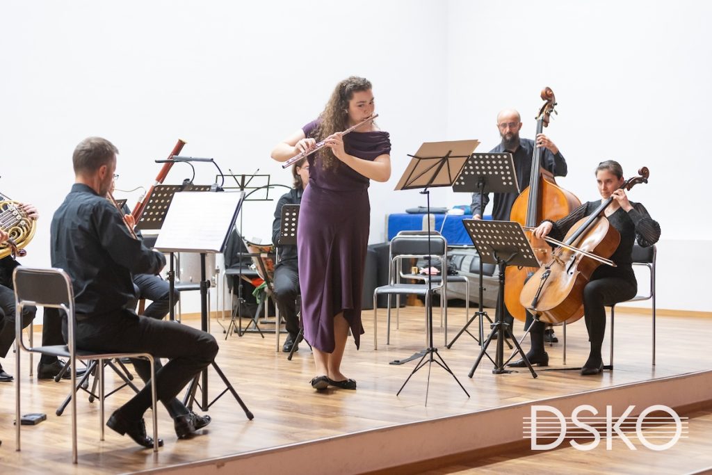 Koncert je započeo u svečanoj i toploj atmosferi, a osobitu pozornost slušatelja privukli su dugoselski umjetnici čija je kreativnost i umjetnička izvrsnost bila u središtu ove glazbene večeri. Flautistica Sara Lončar nastupila je kao solistica u Schubertovoj Introdukciji i varijacijama “Trockne Blumen”, gdje je svojim muzikalnim fraziranjem i sigurnom tehnikom osvojila publiku. Njezina interpretacija donijela je djelo u punoj izražajnoj snazi, a publika ju je nagradila dugotrajnim pljeskom.